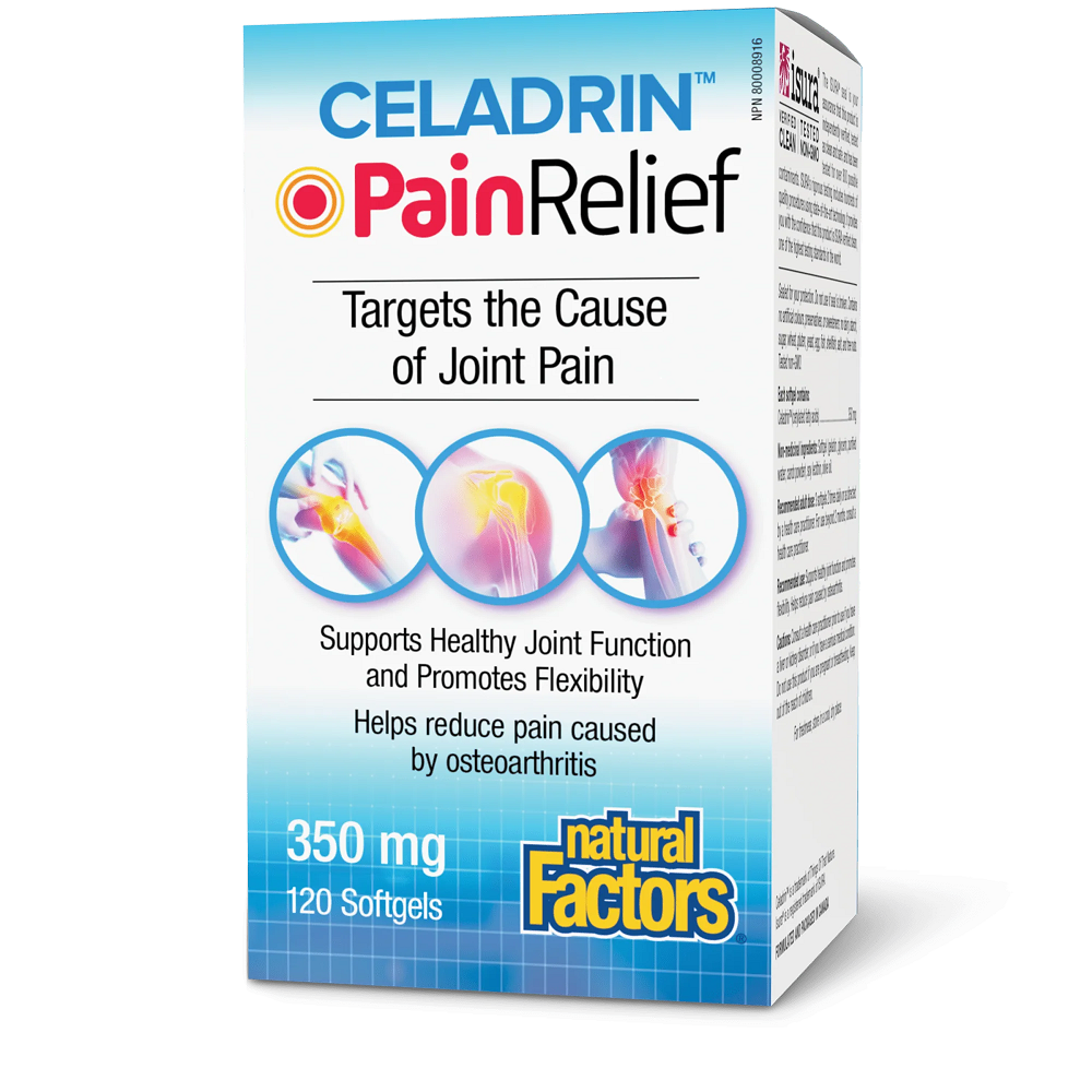 Natural Factors Celadrin PainRelief contains a proprietary blend of esterified fatty acid carbons for fast-acting relief from joint pain resulting from osteoarthritis. Celadrin is considered a “cellular lubricant” clinically supported for joint health and function, including flexibility and movement. The easy-to-swallow softgels are absorbed quickly and contain a higher proportion of CFA esters than standard hard tablet forms – so you can stay active!