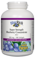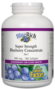 Blueberries support vision, slow premature aging, combat cognitive decline, and help prevent urinary tract infections, thanks to anthocyanins, the high ORAC (oxygen radical absorbance capacity) antioxidants in blueberries. Natural Factors BlueRich is a super strength 36:1 concentrate made from whole Canadian-grown blueberries, and provides the entire spectrum of blueberry nutrients.