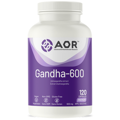 In North America, ashwagandha is becoming widely known as an adaptogen; an herb that protects against the effects of the body’s stress response. Stress, especially chronic stress, can lead to the development of digestive issues, vitamin C depletion, adrenal exhaustion, decreased libido and sexual function, poor physical endurance, and increased anxiety. Ashwagandha reduces these effects of stress, helps to conserve mental energy, and supports the immune system. Gandha-600 is an extract of ashwagandha, properly standardized for its two main anti-inflammatory and anti-stress components: withanolide and sitoindoside.
