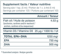 If you’re looking for a balanced omega-3 fish oil supplement combined with the benefits of 1000IU of vitamin D, try NutraSea+D. In addition to the maintenance of overall good health, cardiovascular health, and brain function, the added boost of vitamin-D promotes healthy bones and teeth. It’s also beneficial for the development of the brain, eyes, and nerves in children and adolescents.**