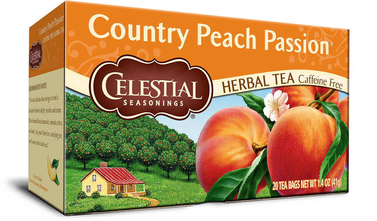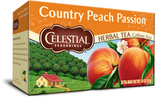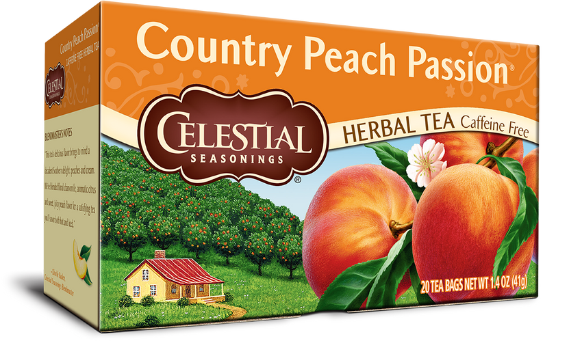 Celestial Seasonings Country Peach Passion Herbal Tea 20 Bags A blend of floral chamomile, aromatic citrus and sweet peaches give this brew a decadent peaches and cream flavor. Savor it both hot and iced. Ingredients: Orange peel, rosehips, hawthorn, chamomile, natural peach flavor with other natural flavors, blackberry leaves, hibiscus,...