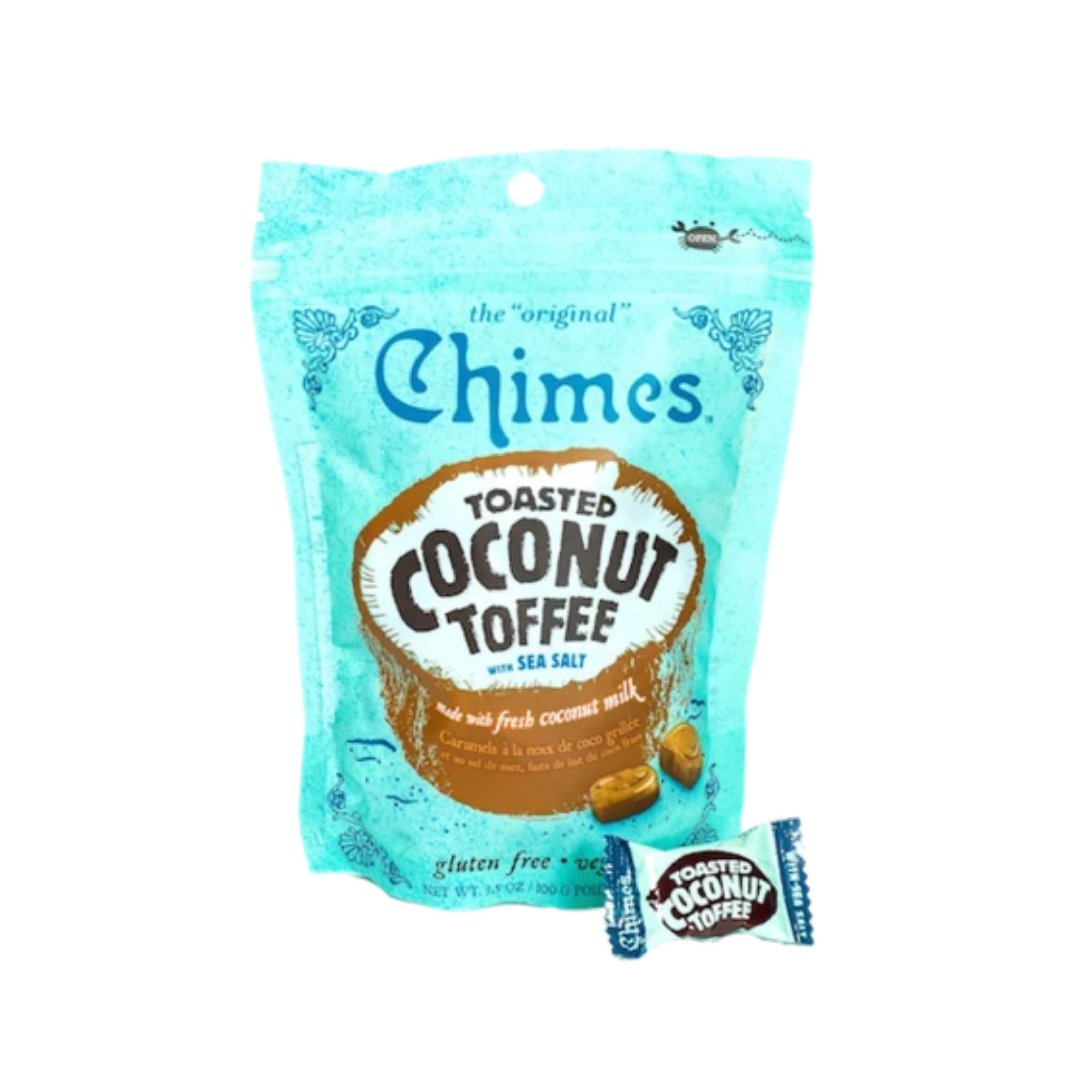 Chimes Toasted Coconut Toffees 100g Step into the tropics with Chimes Toasted Coconut Toffees! We take real coconut milk and cook it with caramelized cane sugar to create a toasty toffee that will tango on your tongue! The recipe is a classic from Malaysia, where it’s been a local treat...