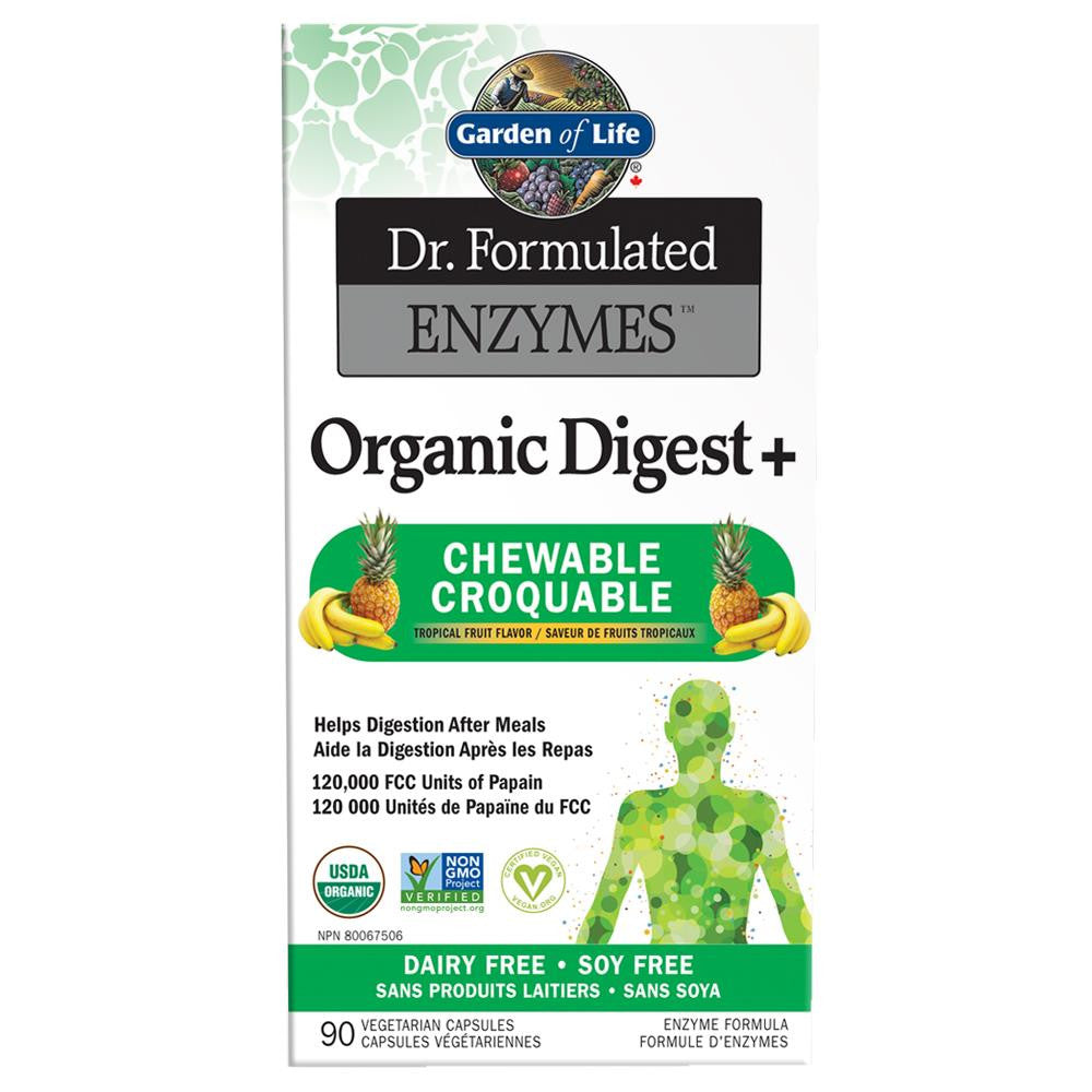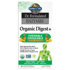 Dr. Formulated Enzymes Organic Digest + is the first and only USDA Certified Organic and non-GMO delicious chewable vegan enzyme.