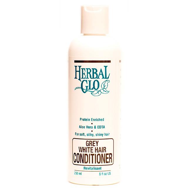Herbal Glo Grey/White Hair Conditioner Herbal Glo Grey/White Hair Conditioner is specially formulated with EDTA and Aloe Vera to enhance silver and white hair. It adds shine to keep your hair youthful and healthy looking. Ingredients: Water, Cetrimonium Chloride, Cetyl Alcohol, Isopropyl Myristate, Panthenol, Fragrance, Hydrolysed Wheat Protein, Octyl Methoxycinnimate, EDTA (chelating agent), Chamomile Extract, Jojoba Oil, Rosemary...