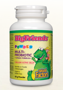 Natural Factors Big Friends Children's Mult-Probiotic NPN 80033530 Big Friends children’s vitamins are back in a big way, and now better than ever. Big Friends Powder Multiprobiotic from Natural Factors contains 3 billion active cells of seven bacteria species. Each strain is specifically cultured to meet the needs of children...