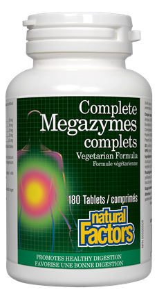 Natural Factors Complete Megazymes NPN 80071922 Complete Megazymes from Natural Factors is a blend of vegetarian sourced enzymes to assist and enhance normal digestion. The enzymes help the body break down proteins, carbohydrates, and fats while improving nutrient absorption. Medicinal Ingredients Each tablet contains: Amylase (5000 DU/g) (Aspergillus oryzae)...