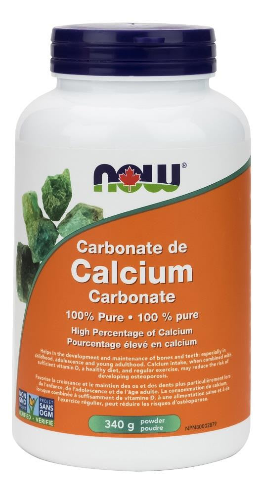 NOW Calcium Carbonate Helps in the development and maintenance of bones and teeth: especially in childhood, adolescence and young adulthood. Calcium intake, when combined with sufficient vitamin D, a healthy diet, and regular exercise, may reduce the risk of developing osteoporosis. An aging population with many baby boomers entering menopause...