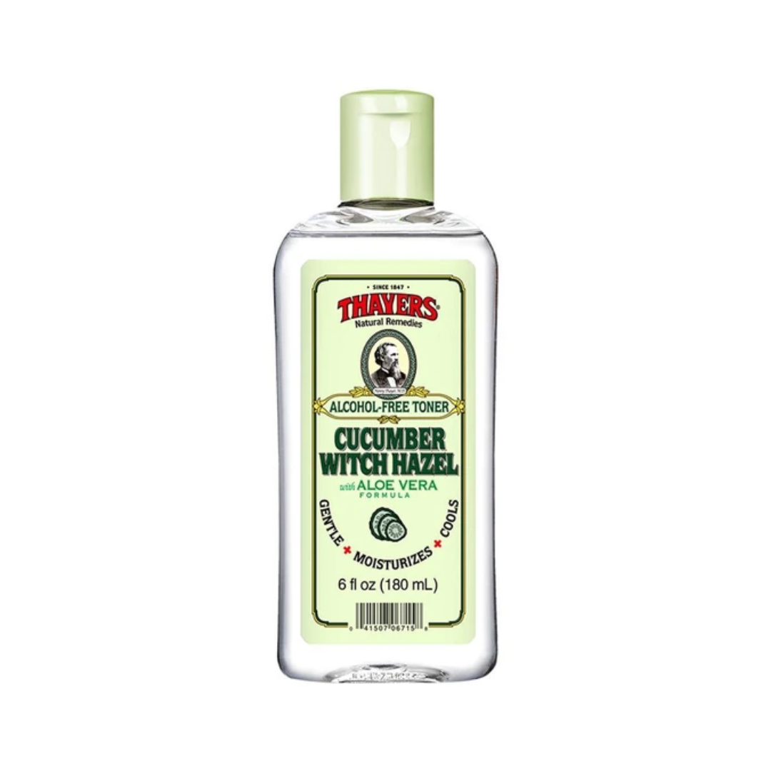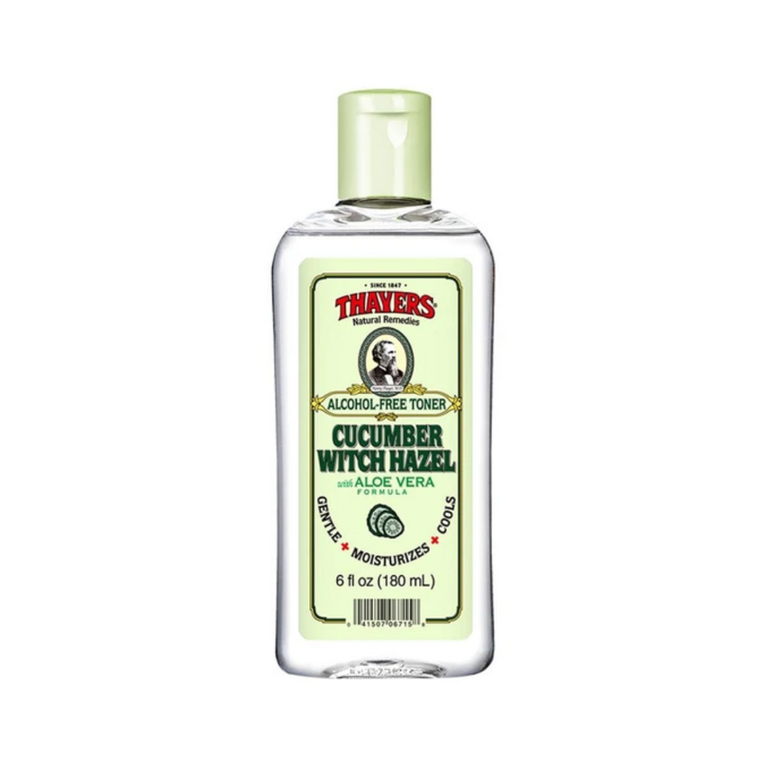 Thayers Cucumber Witch Hazel Toner Made of extract from the Witch Hazel shrub (Hamamelis Virginiana) and a blend of other time-tested ingredients – THAYERS® Witch Hazel with Aloe Vera Formula Astringents and Alcohol-Free Toners are soothing, natural treatments that cleanse, tone and soothe your skin. THAYERS® are the only Witch...