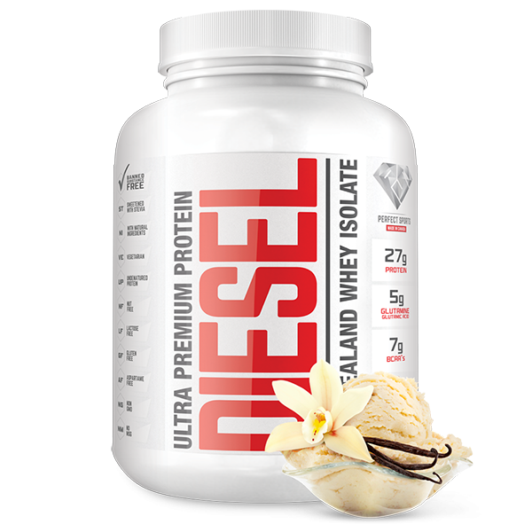 DIESEL is an ultra premium whey protein isolate engineered to be the most advanced protein formulation ever designed. Derived from 100% New Zealand whey protein isolate, Diesel only uses whey from New Zealand cows that are “Meadow Fed (pesticide free)” and not given any antibiotics, rBGH or BST hormones.